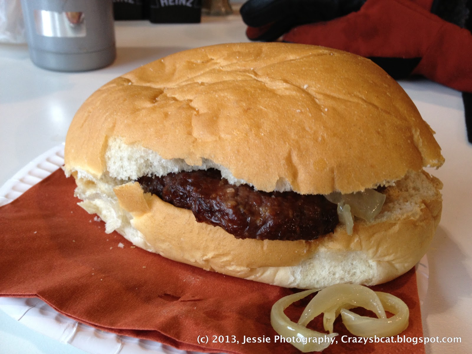 | 我決定放棄口袋裡的scone午餐改吃同學推的Vernson Burger , 肥滋滋的肉夾在麵包中間真的很好吃 |